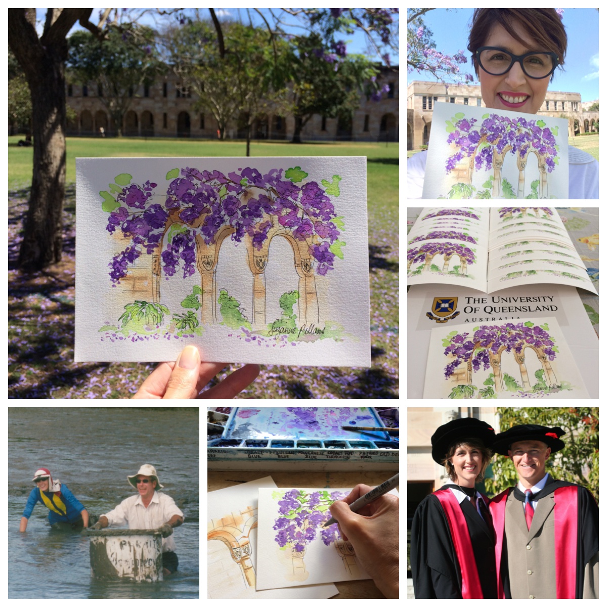 Then, 18 months ago I took the plunge and dived into a new career, running my own creative business “Picture your ideas” with Dr Sue Pillans, where I combine my skills as a marine ecologist, artist and strategist to provide a range of creative and visual services as a graphic recorder and creative scientist. My relationship with UQ continues to this day in my adjunct role as a Research Fellow. THEN, to my delight UQ commissioned me to paint scenes of this iconic establishment which I entitled “UQ in Bloom”. An honour to create these artworks as a proud alumni of UQ. So my story shows that art and science certainly complement each other and make it part of your life. As my sci-art hero Albert Einstein says, “Creativity is intelligence having fun“, and I’m certainly having fun with my blooming sci-art life! You can see more of my commissioned artworks here https://drsuepillans.com/artworks/