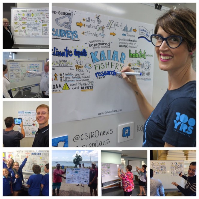I can’t believe its almost the end of the year and what a year 2016 has been for me “Picturing your ideas“!! I have thoroughly enjoyed drawing out the ideas, issues and information from a diverse group of people, teams, schools and organisations this year. My graphic recording has also taken me to some amazing and far away places starting in the Philippines, to Western Australia, across regional Queensland to Torres Strait and to my beloved hometown of Brisbane! A BIG thank you to all of my amazing clients and colleagues who were part of my visual journey this year, and for supporting small creative business! I just love putting people in the picture and it’s the people that make my job so enjoyable. And as you can see from all of the smiling faces, graphic recording certainly adds another element to group discussions and helps people to see the big picture. A special thank you to my family, friends and creative (scicomm) community who have continually supported me through my new creative journey. I am so very grateful and proud that I am turning something I love into something I live and I just can’t wait for the next chapter in my story! I have new and exciting creative collaborations planned for next year with 2017 being The Year of AWESOMENESS! So here I come 2017, ready to Picture your ideas!!