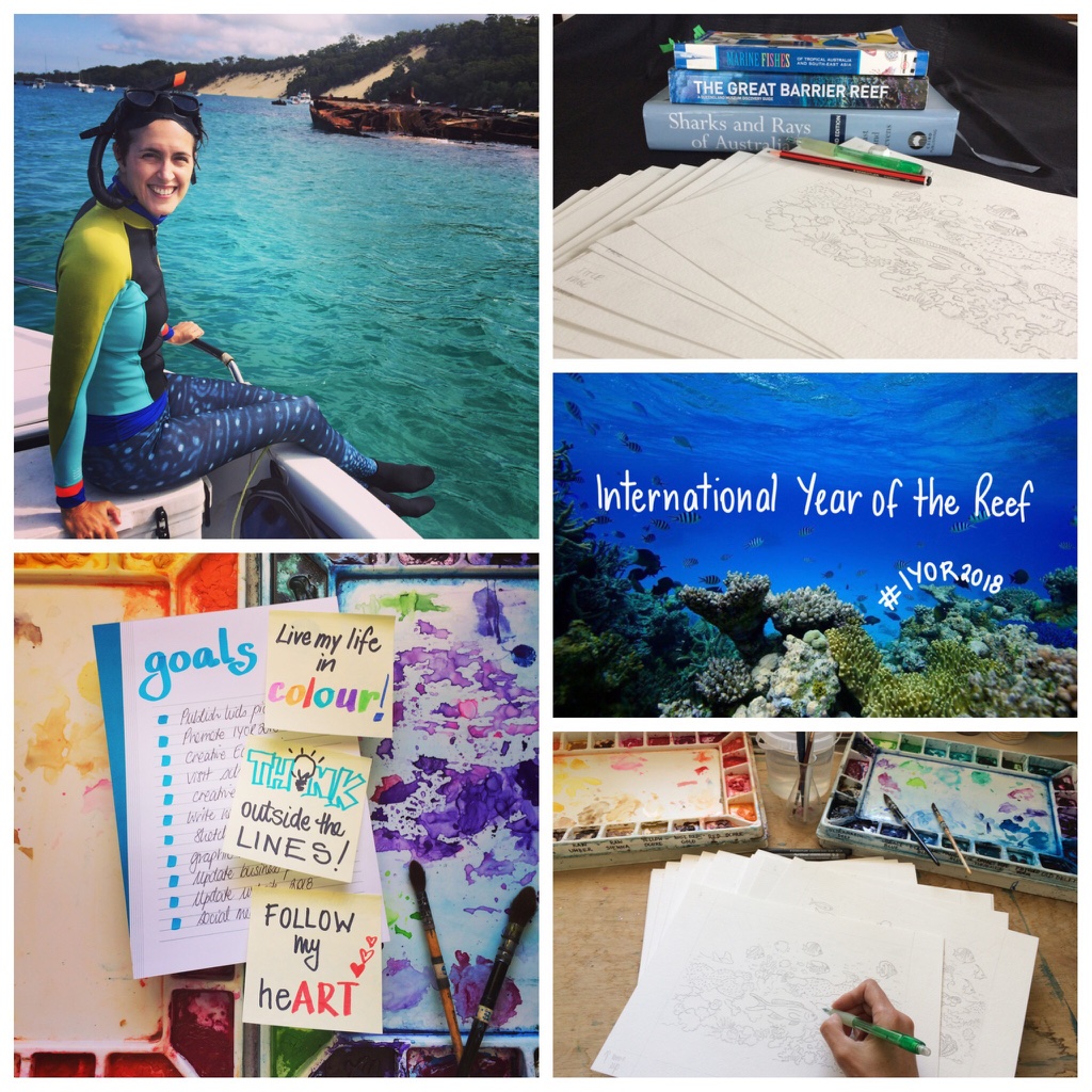 My book illustrates the impacts of climate change on the Great Barrier Reef with messages of hope and ocean optimism #haveGBRhope. AND the release of my story in 2018 also aligns to the International Year of the Reef!! So I will be celebrating #IYOR2018 by sharing my visual Reef stories throughout the year. You can ‘sea’ more about my Reef story and the illustration process and progress via The Great Barrier Reef.