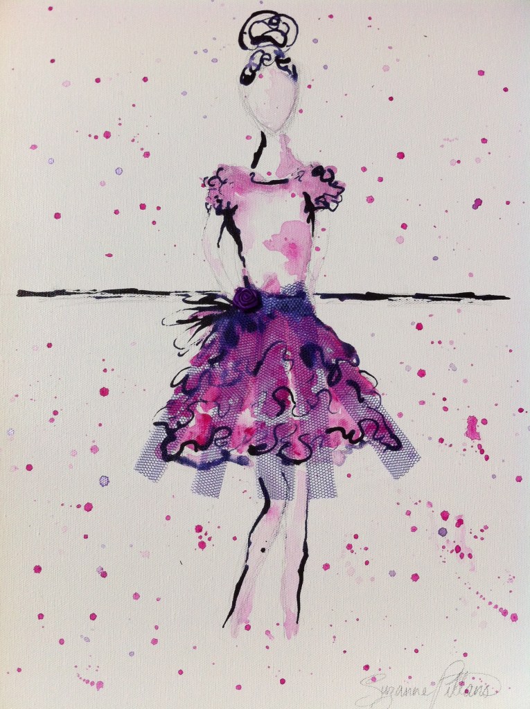 I also have a passion for fashion and enjoy the way watercolours and inks take the shape of classical couture, fabulous frocks and sensational shoes. You can follow my fashion artworks and fashion tips, tricks and trends through my Miss Frockstar page.