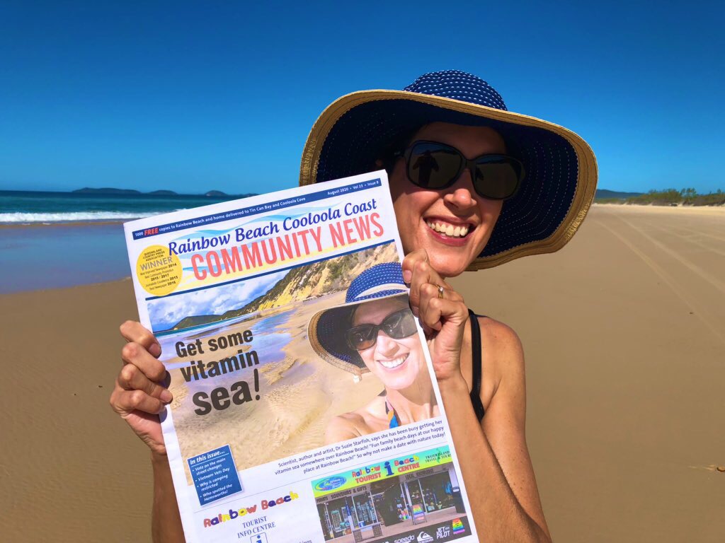 It is always wonderful to ‘sea’ the below stories featured in the local Rainbow Beach Cooloola Coast Community News about my love for Rainbow Beach, how it inspires my ocean storytelling and where I get my Vitamin Sea!