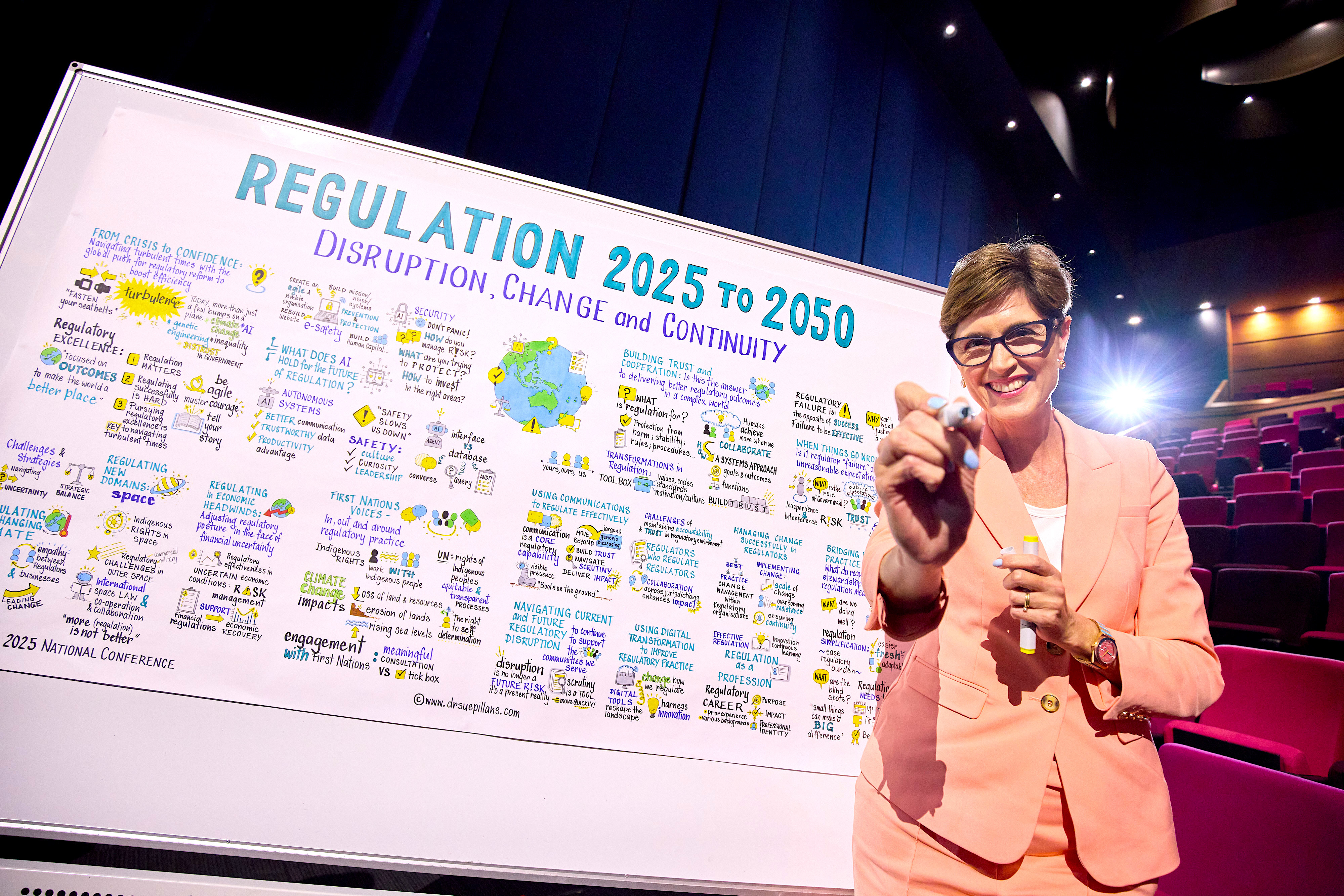 The process of graphic recording is more about me listening than drawing as I listen for the key messages, interpret the information, synthesise the discussions and then draw out the visual story with words and pictures. As about 65% of us are visual learners when we “see it, we get it” so this visual approach provides a clear way of organising information for both the eye and the brain and shows your audience the ‘BIG picture’.