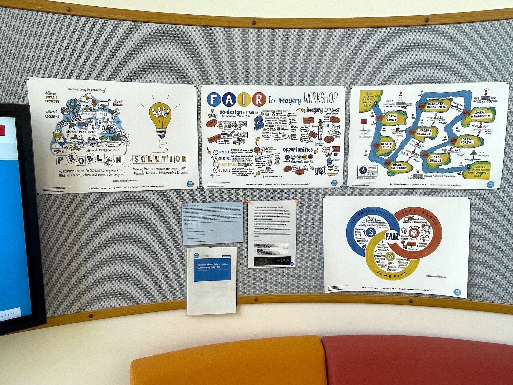 And the team provided me with such great and positive feedback on my graphic recording saying, “This is fantastic. It captures the workshop perfectly“. And now the teams ‘work of art’ is displayed proudly in the foyer of CSIRO.