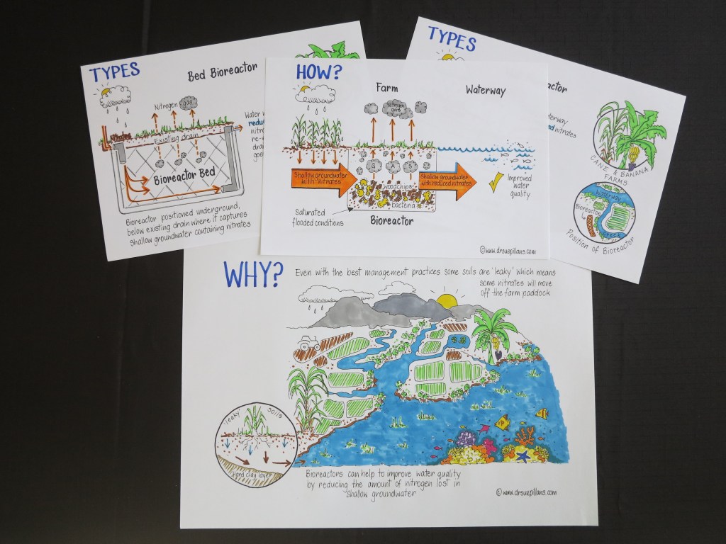 It is a great pleasure working with Terrain NRM to help them illustrate the important new ways Wet Tropics farmers in Queensland are working to improve the health of the Great Barrier Reef (as part of the Wet Tropics Major Integrated Project). This creative collaboration involves me drawing out the following catchment repair technologies which are then transformed into fact sheets for farmers: