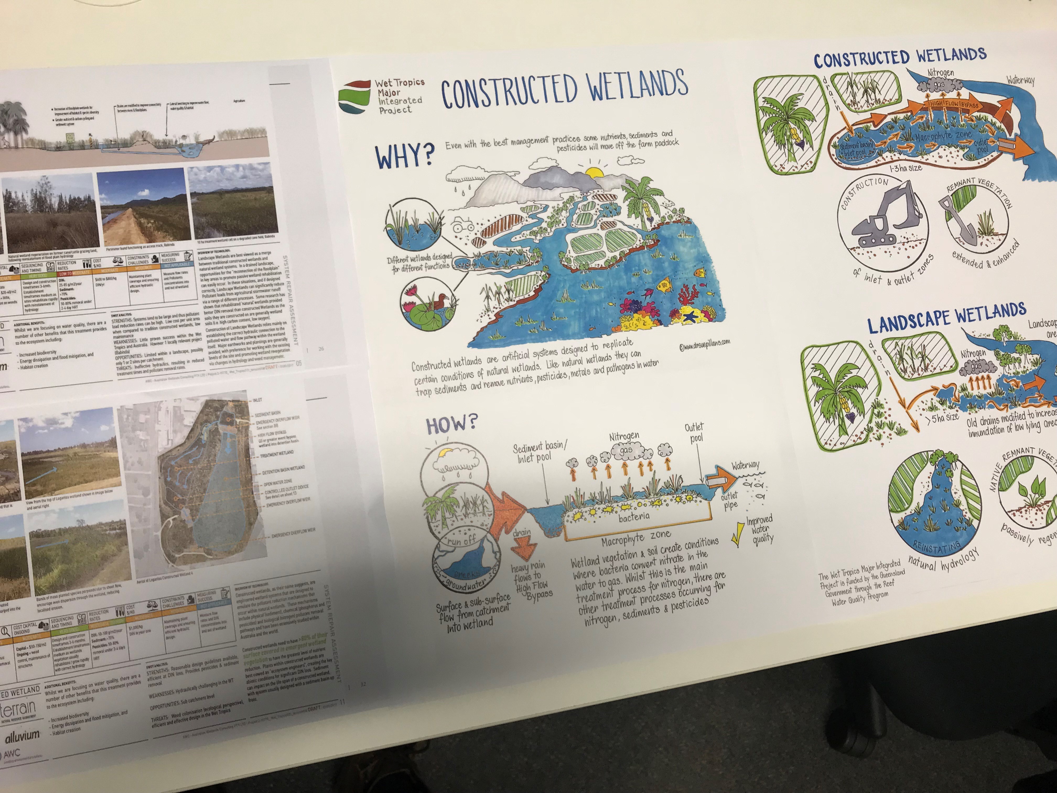Constructed Wetlands The next in the series of catchment repair technologies that I am drawing out for Terrain NRM is ‘Constructed Wetlands’. Constructed Wetlands can trap sediments and remove nutrients, pesticides metals and pathogens in water. And you can see the fact sheet for farmers here: https://terrain.org.au/projects/wet-tropics-major-integrated-project/program-design-documents/