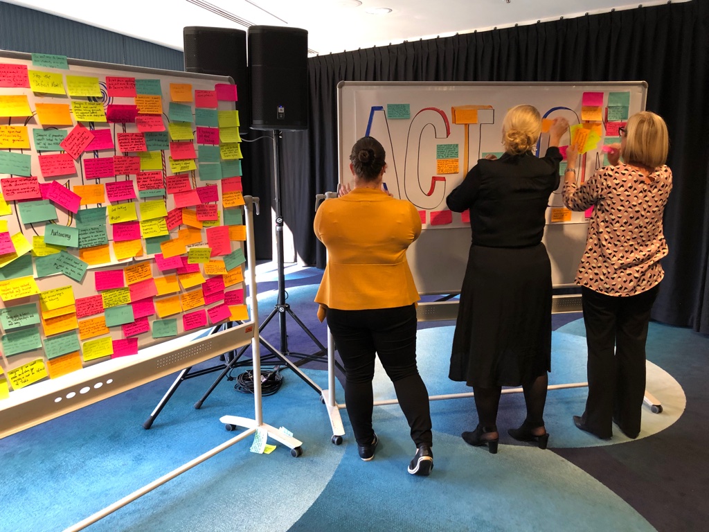 It was great to create these simple but very effective Action and Inspiration Walls for a big Conference. These ‘action walls’ were built into the Conference Agenda as a series of group work exercises carried out throughout the day to help inspire ideas. As you can see there were A LOT of inspired ideas for strategy, action and imagine if!