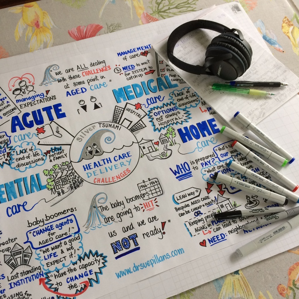 Timelapse drawings are another powerful way to visualise information and share your stories. You can also use these short videos to promote and ‘draw attention’ to your upcoming events, episodes, reports… absolutely anything! To create these type of videos I usually work with my clients and their communications teams, unless you are seeking a very short Timelapse video (ie. 1 minute). You can see more videos of my visual work on my YouTube channel @drsuepillans