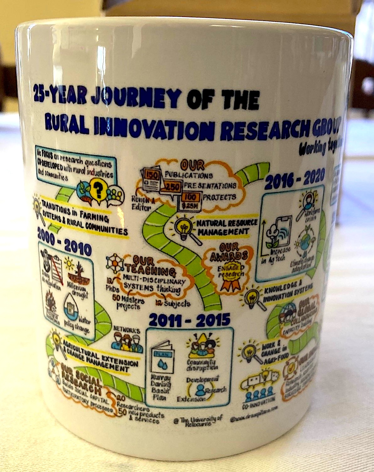 THIS has to be the icing on the cake for me, literally! What a joy and a privilege to picture the 25-year journey of the Rural Innovation Research Group (RIRG) from the University of Melbourne!
